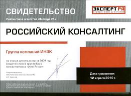 Группа ИНЭК на протяжении нескольких лет стабильно входит в TOP-50 ведущих российских консалтинговых компаний и по результатам 2009 года занимает 40 место в списке консалтинговых групп России.